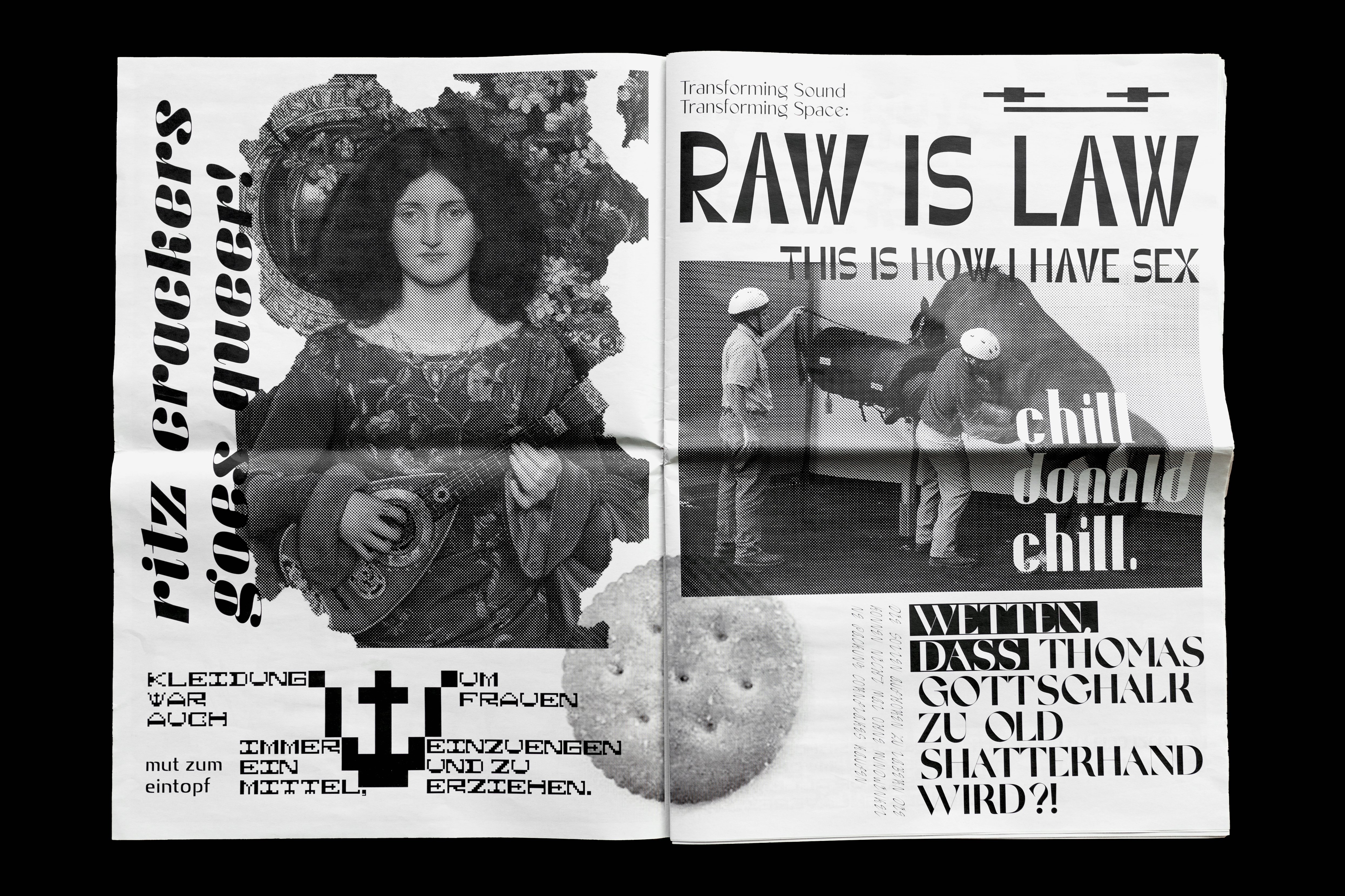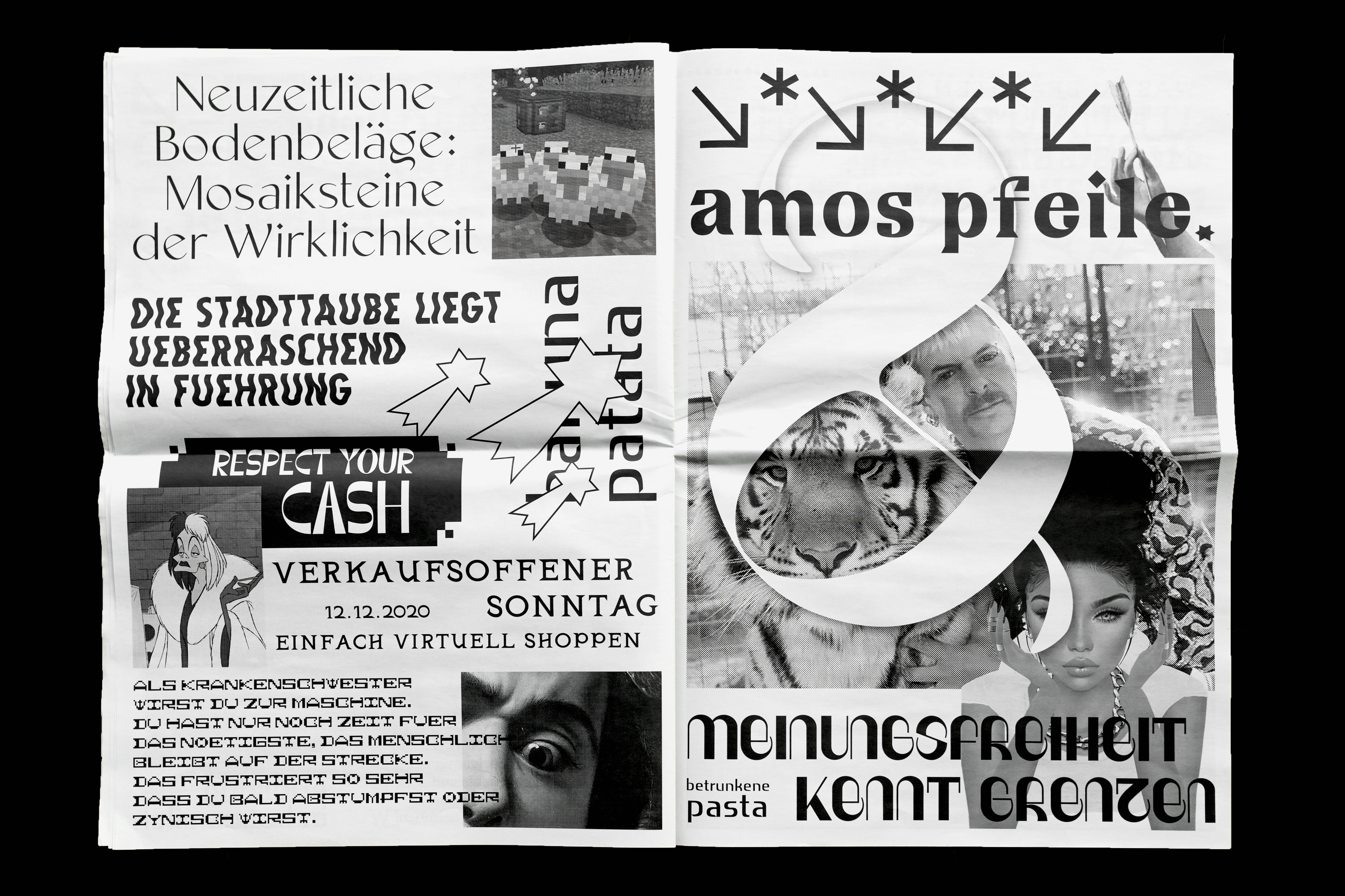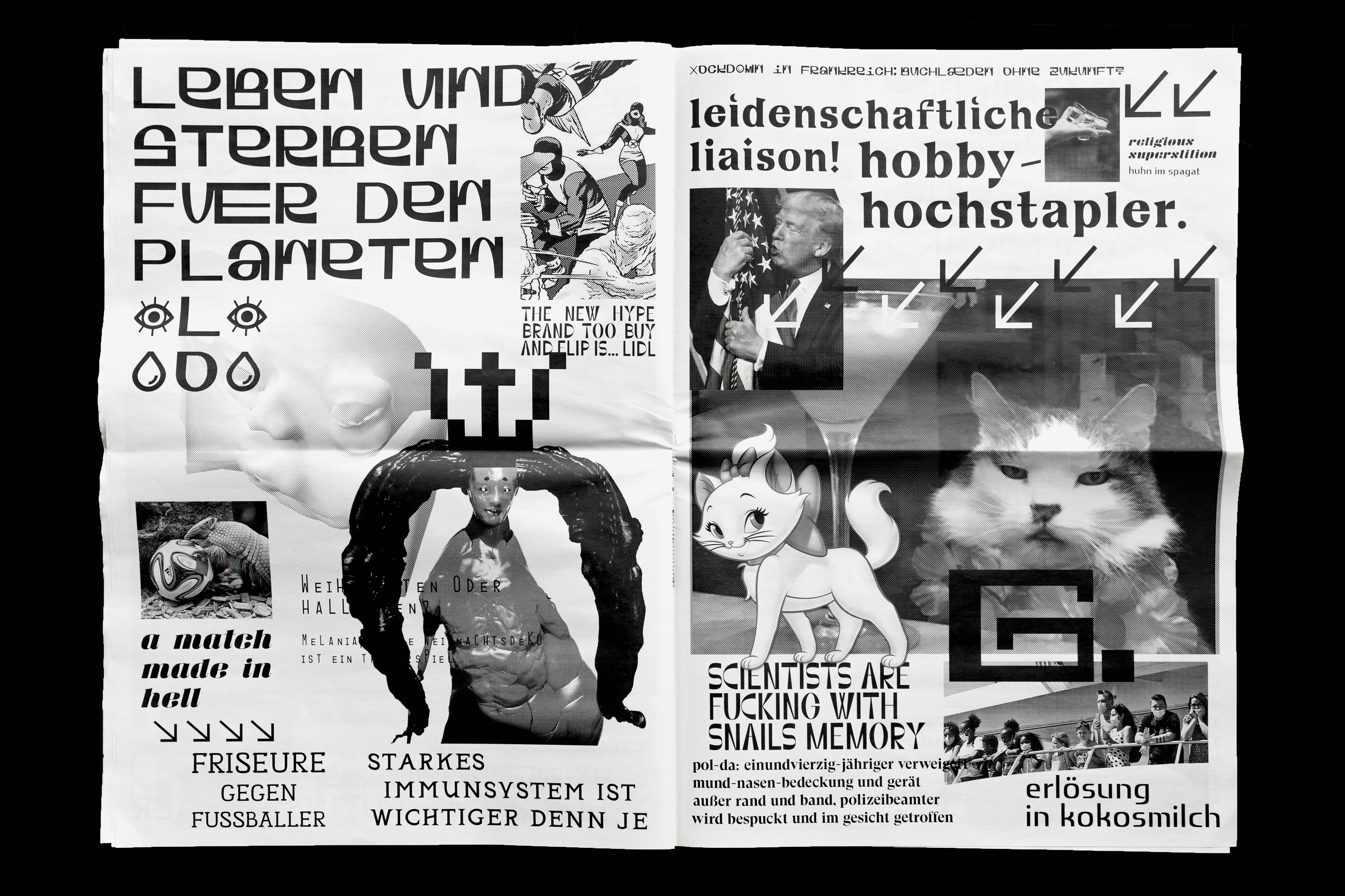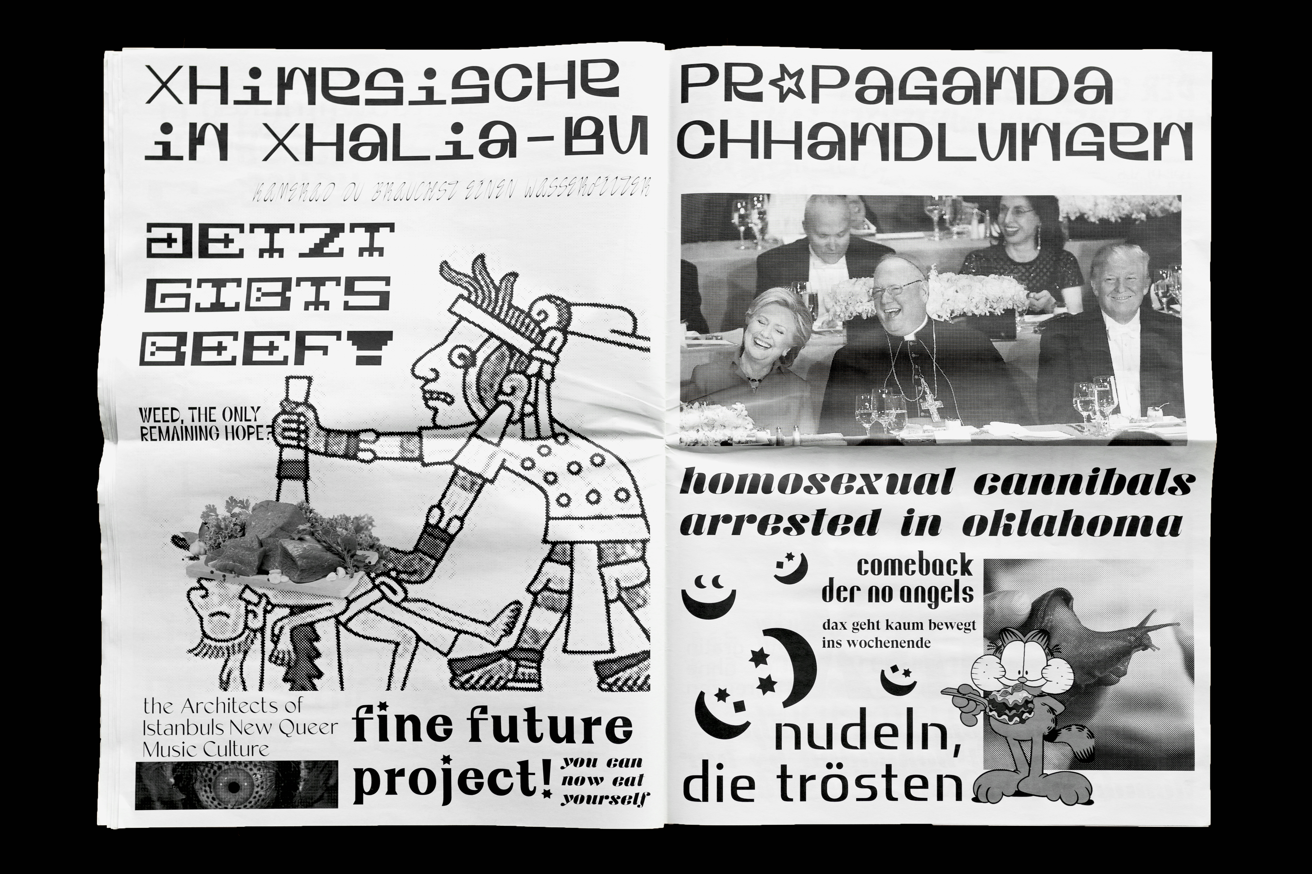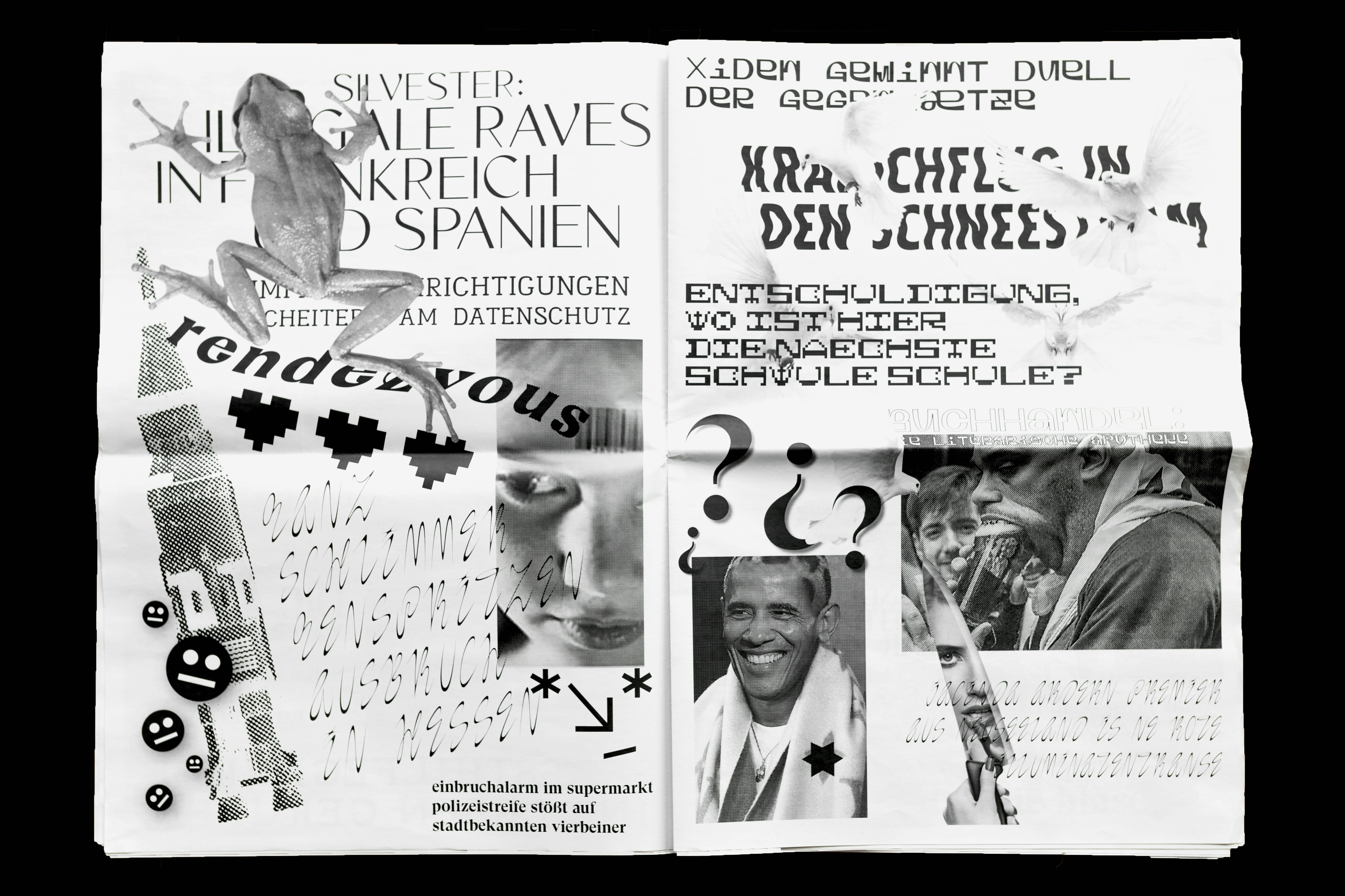 Design of a newspaper type-specimen. All participants provided the newspaper designers with their self-designed typefaces in the form of headlines of a chosen news outlet, as well as suitable or unsuitable image material. This content was then collaboratively compiled in an Indesign document by the design team, and the various typefaces were randomly mixed with both each other as well as with the visuals.