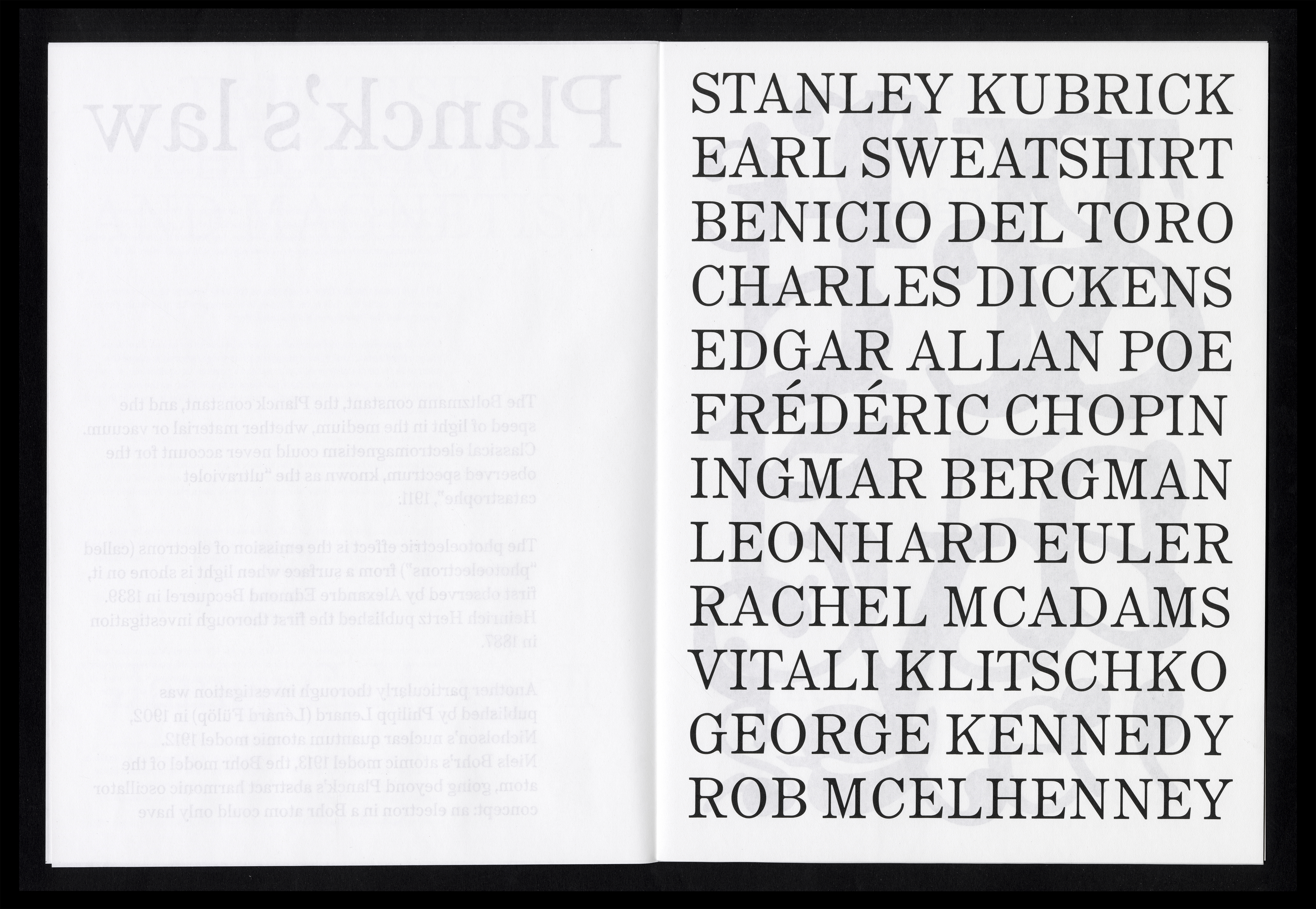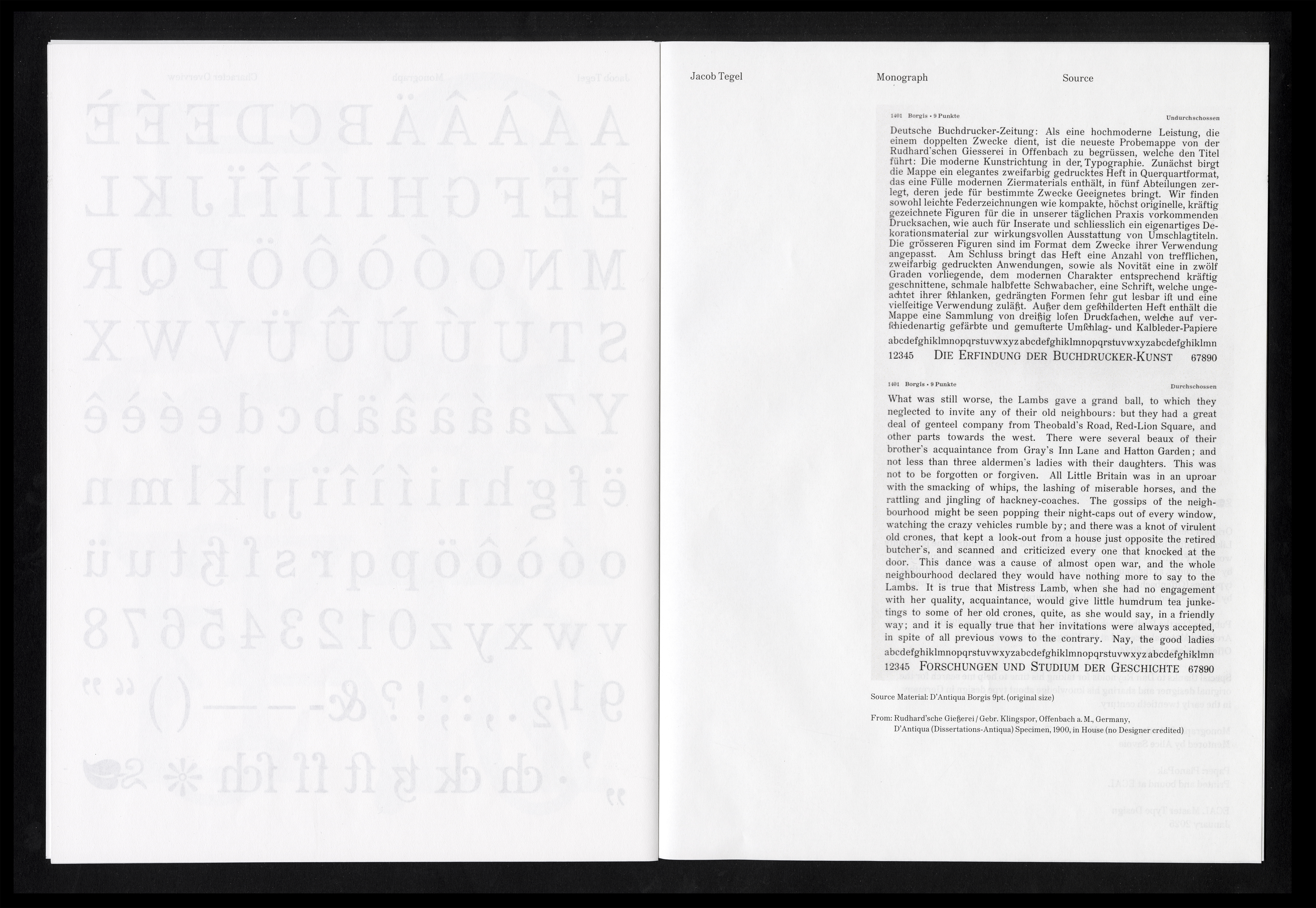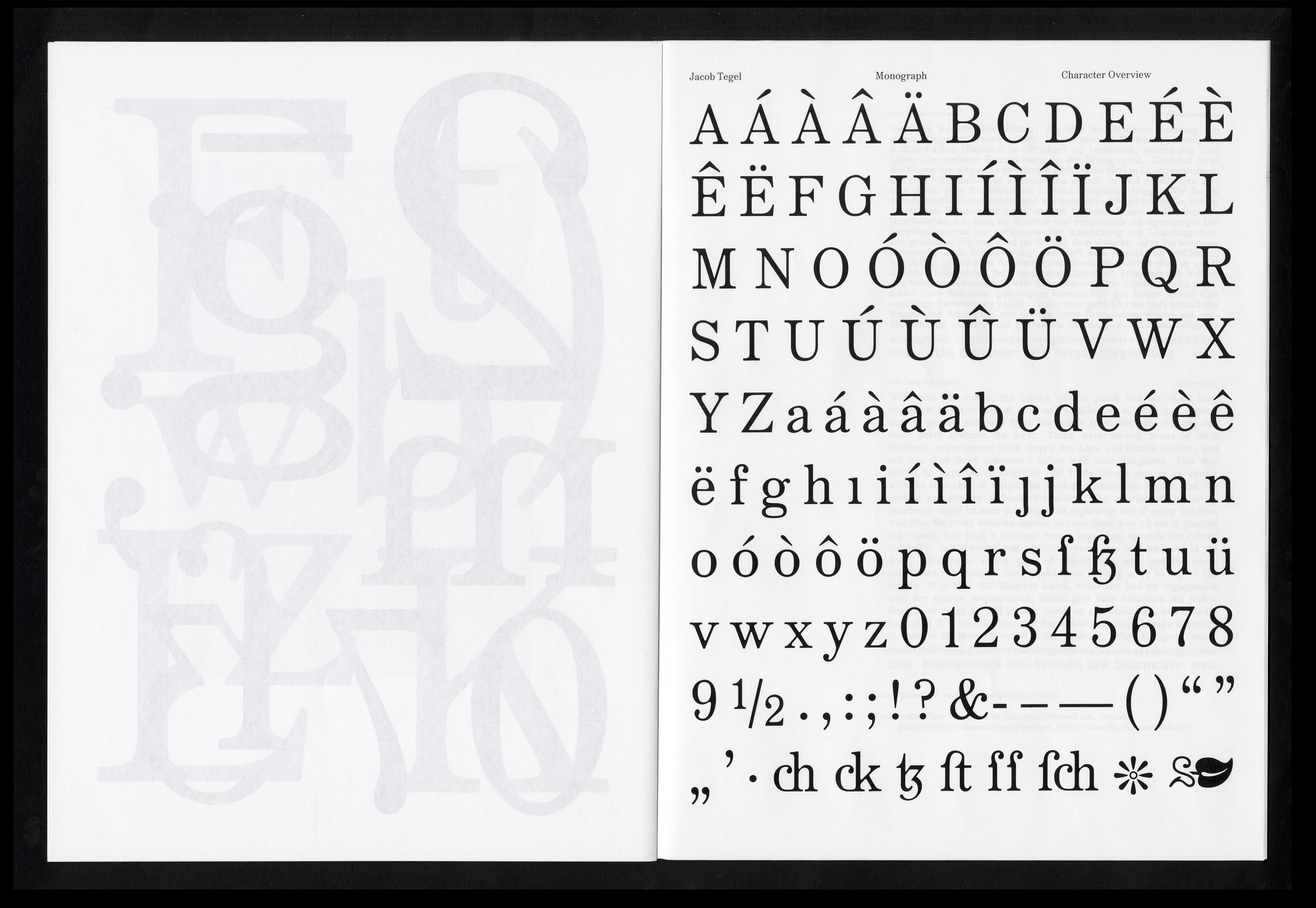 Specimen of Monograph, a revival of D’Antiqua, created during ECAL Master Type Design.